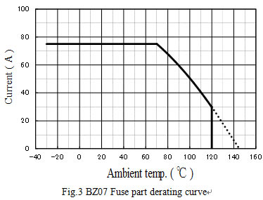 e) Since BZ07 generates Joule heat by current application, reduce the load in accordance with the derating chart to avoid the fusing-off under normal condition. Refer to Fig. 3.